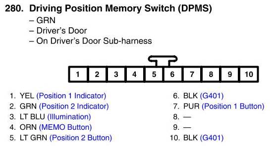 View 280 - Driving Position Memory Switch Connector View (DPMS)