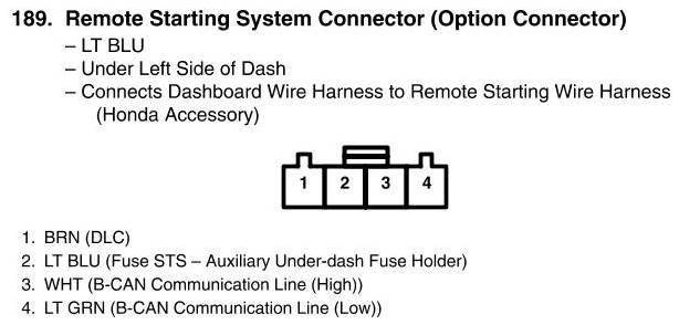 Remote Starting System Connector View (Option Connector)