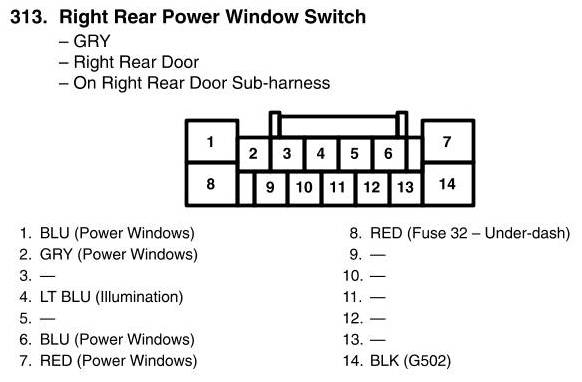 Right Rear Power Window Switch Connector View