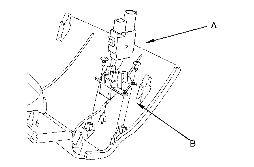 2. Remove the humidity/in-car temperature sensor (A) from the dashboard lower cover. If needed, remove the self-tapping screws and adapter (B).