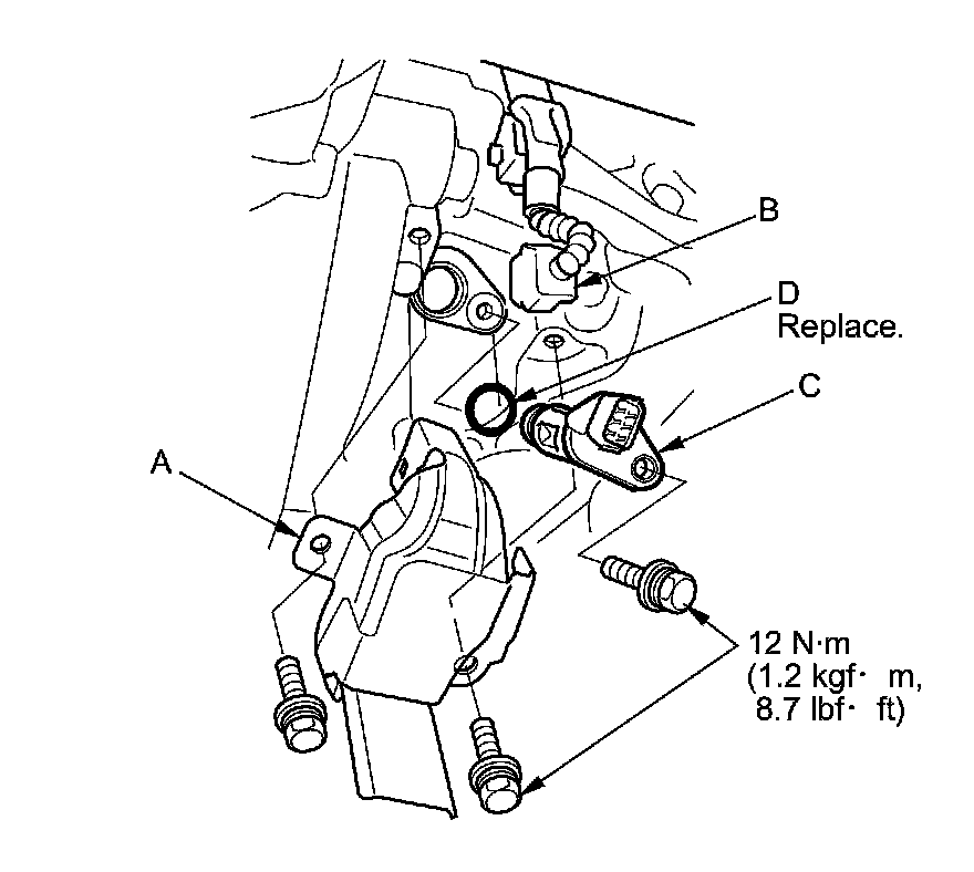 5. Install the parts in the reverse order of removal with a new O-ring (D).