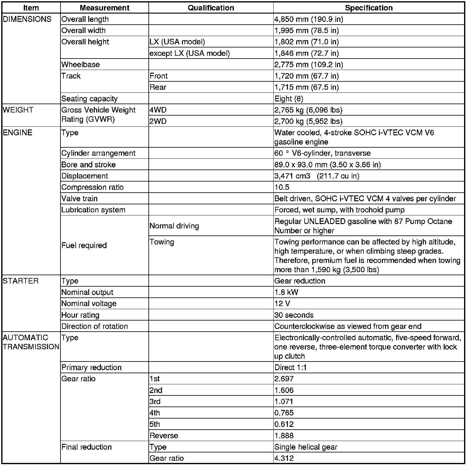 Pilot 2WD V6-3.5L