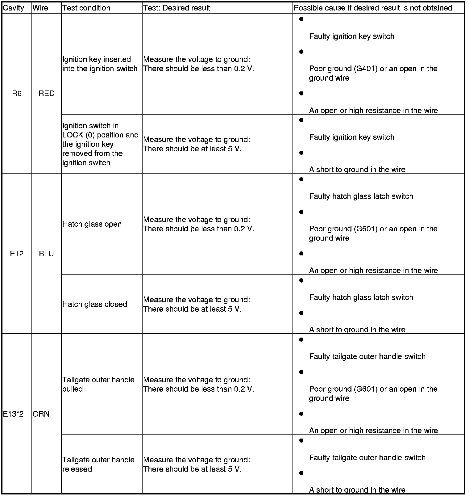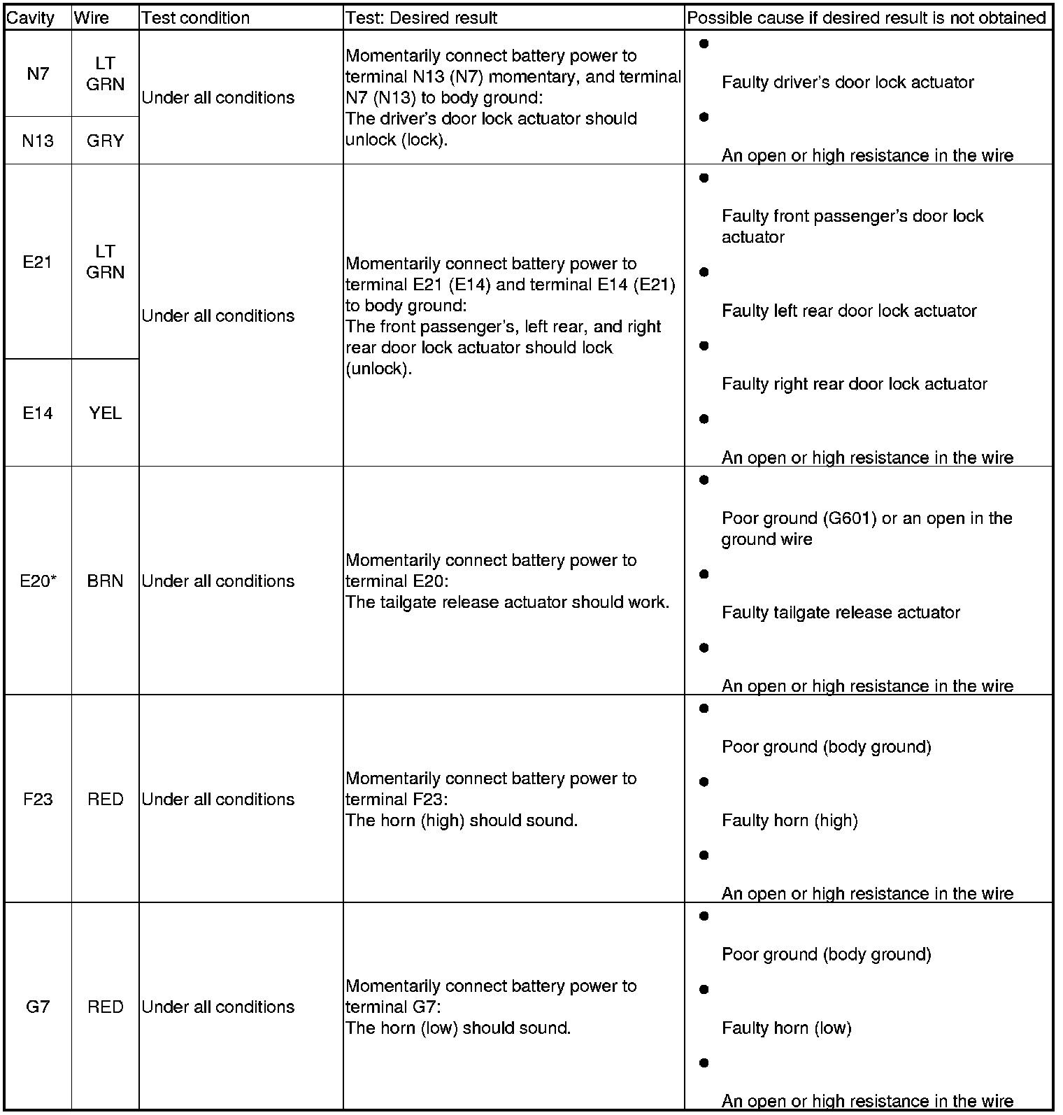 Keyless/Power Door Locks/Security System (MICU and Door Multiplex Control Unit) Input Test