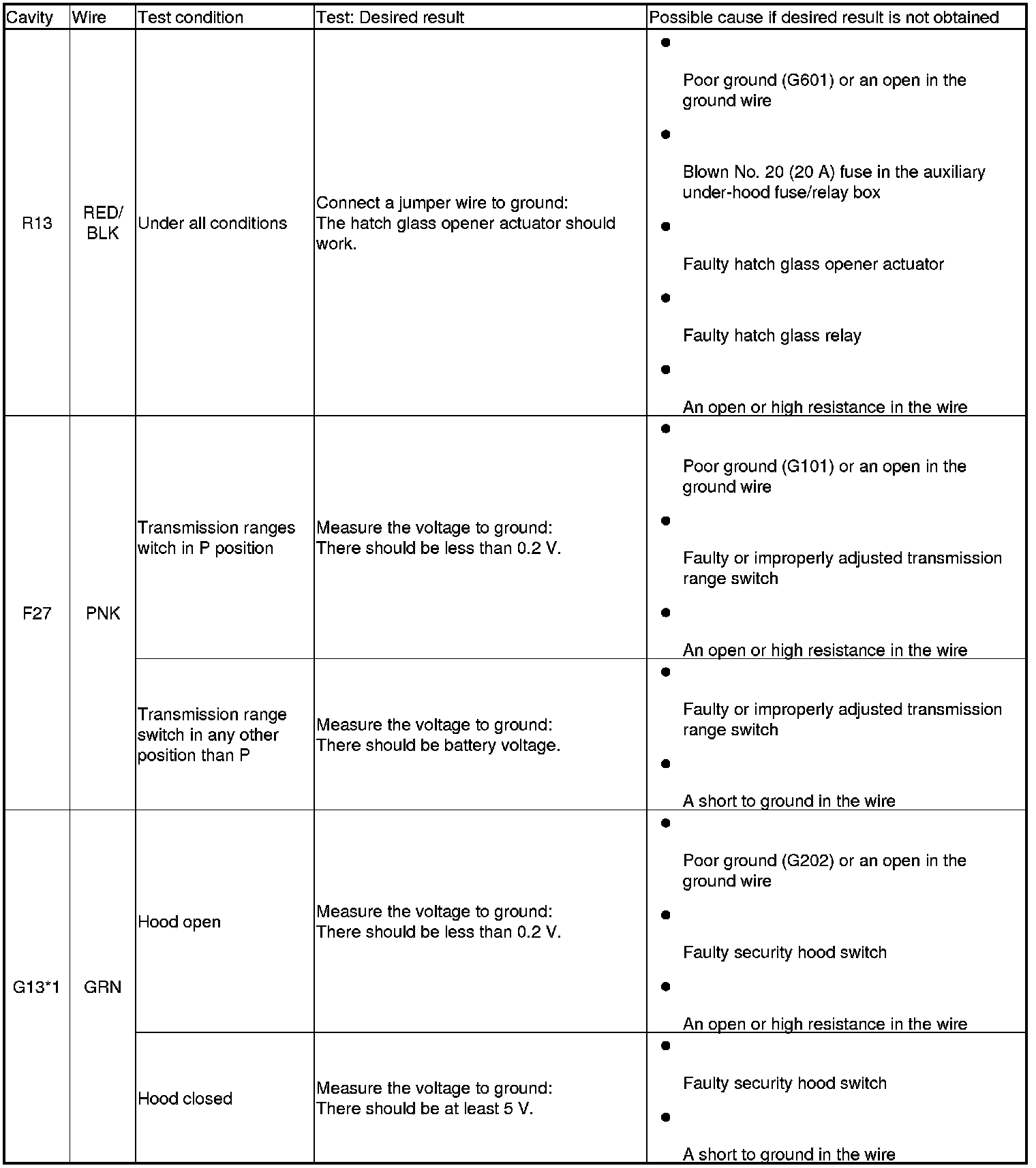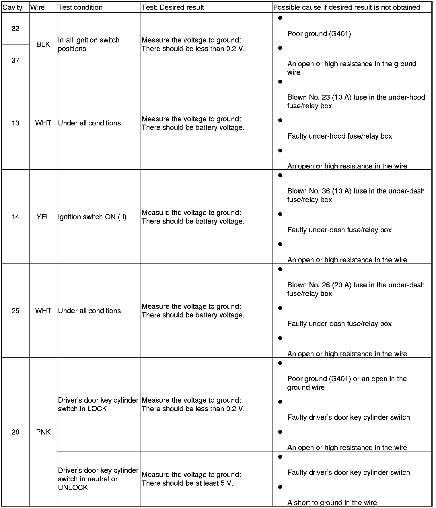 NOTE: Before testing, make sure the No. 10 (7.5 A) fuse in the under-dash fuse/relay box.