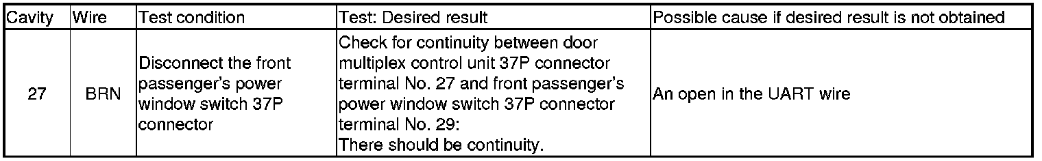 14. Reconnect the 37P connector to the front passenger's power window switch, and do the following input tests.