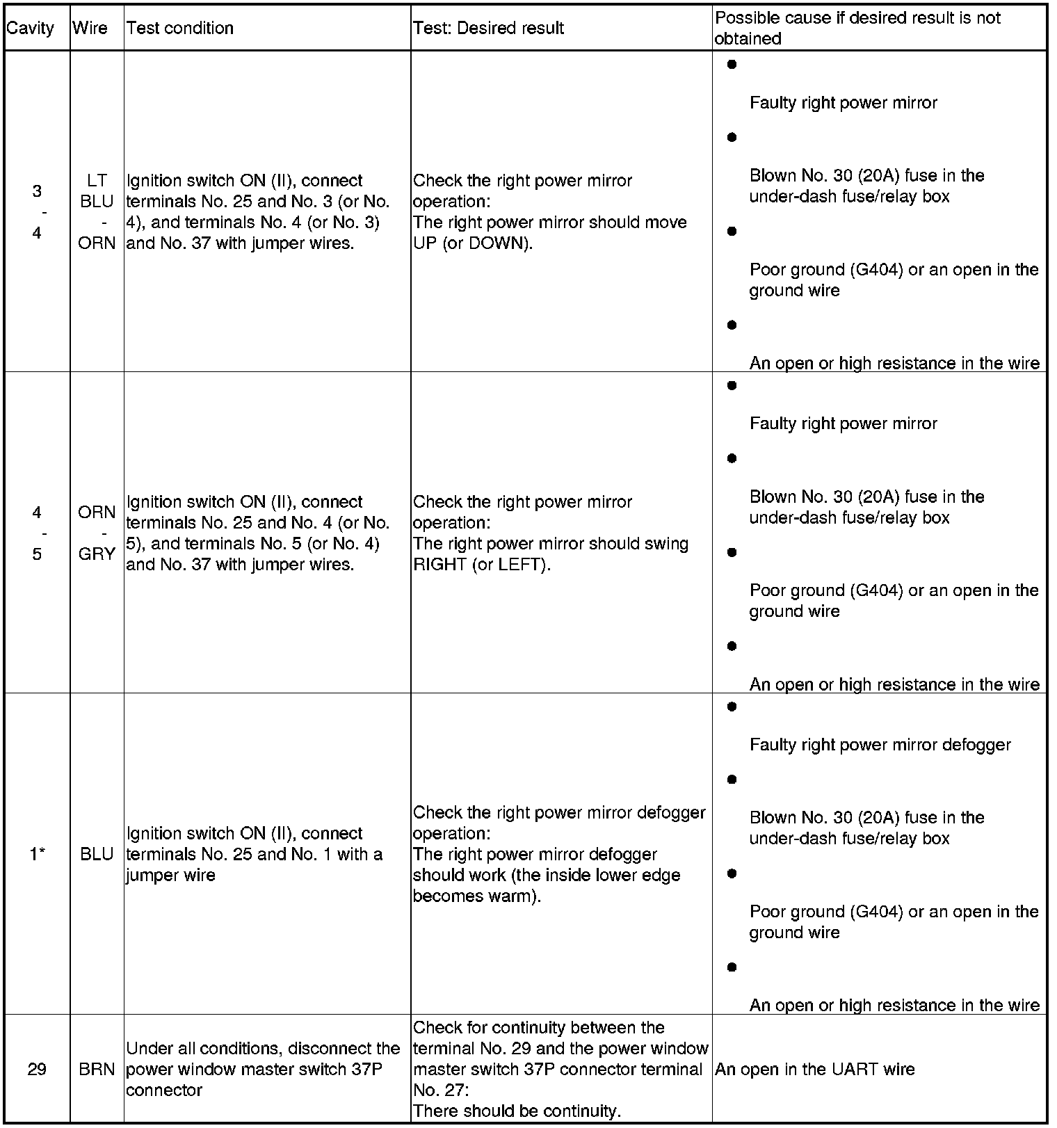 Power Mirrors (Front Passenger's Power Window Switch) Input Test (Without Driving Position Memory System)