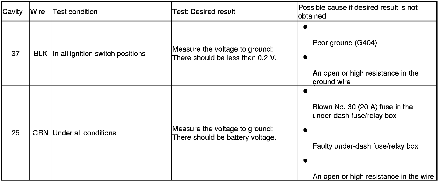 5. Reconnect the connector to the front passenger's power window switch, turn the ignition switch to ON (II), and do the following input tests.