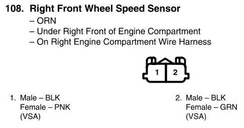 View 108 - Right Front Wheel Speed Sensor Connector View
