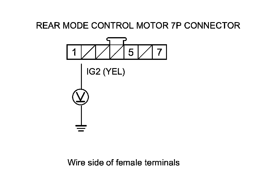 4. Measure the voltage between rear mode control motor 7P connector terminal No. 1 and body ground.