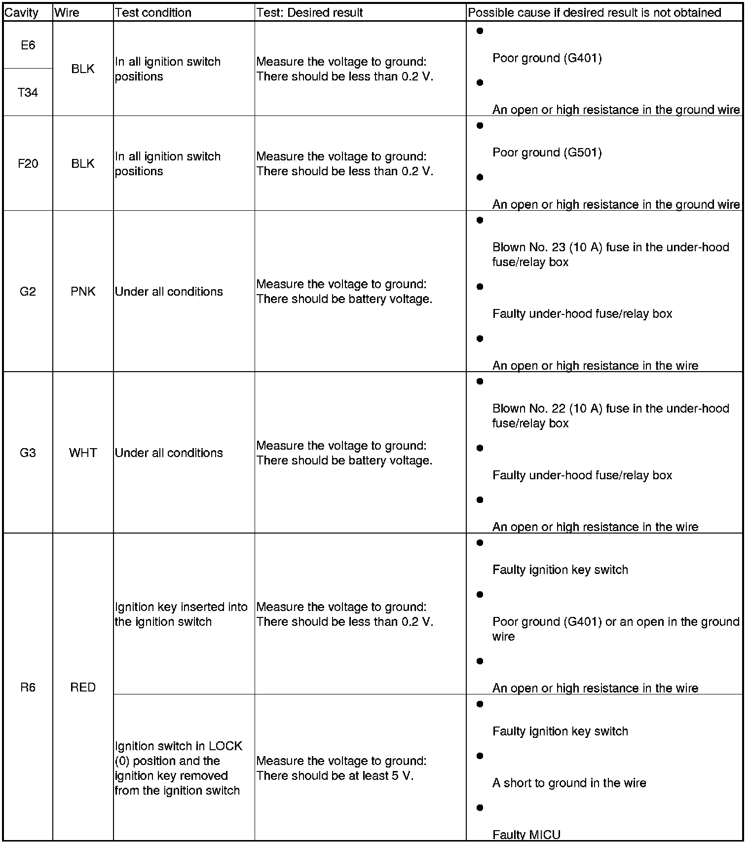 4. Reconnect the connectors to the under-dash fuse/relay box, and do the following input tests.