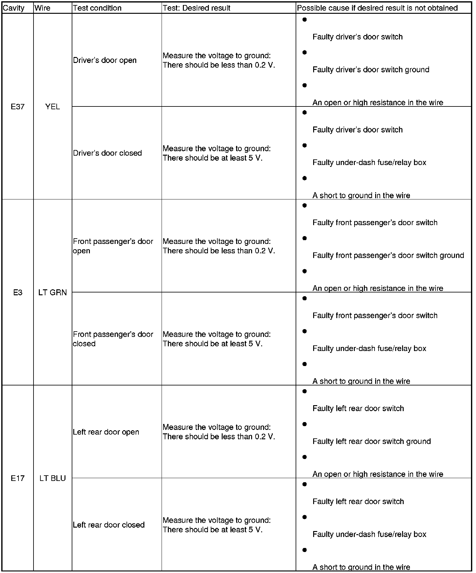 Entry Lights Control System (MICU and Door Multiplex Control Unit) Input Test