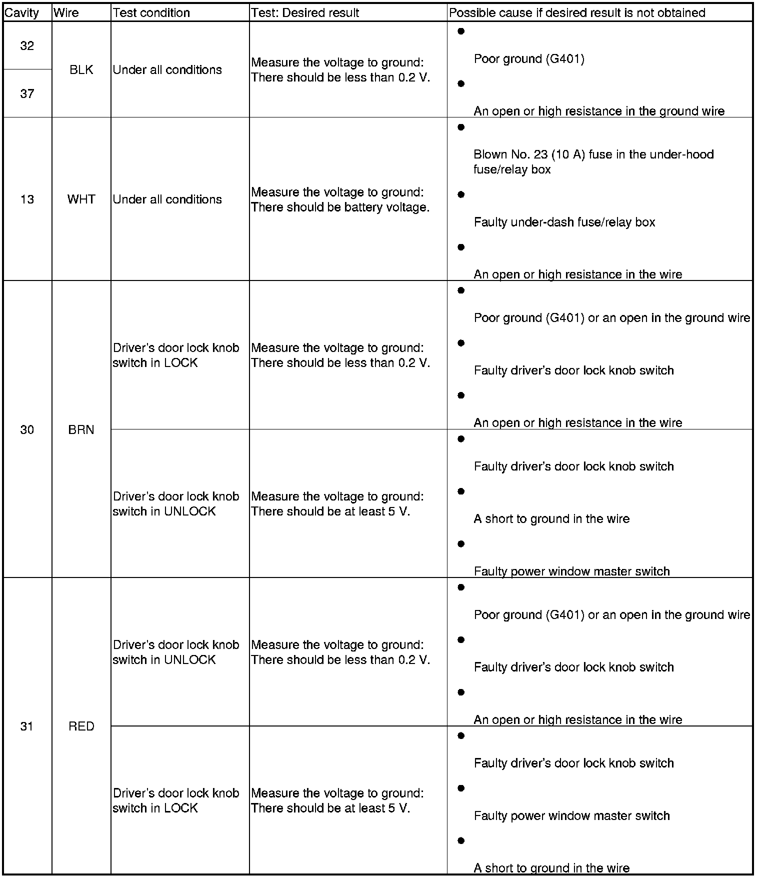 8. Reconnect the 37P connector to the power window master switch, and do the following input tests.