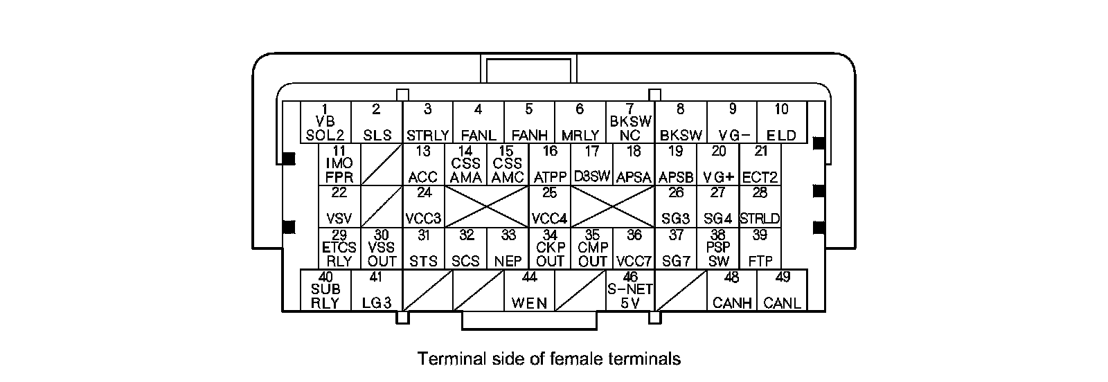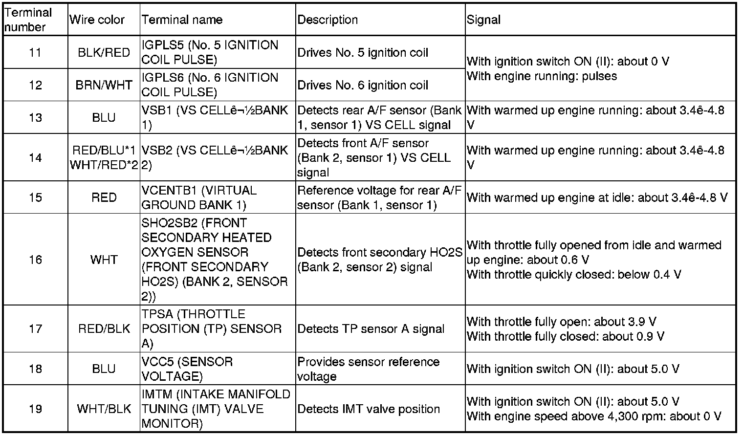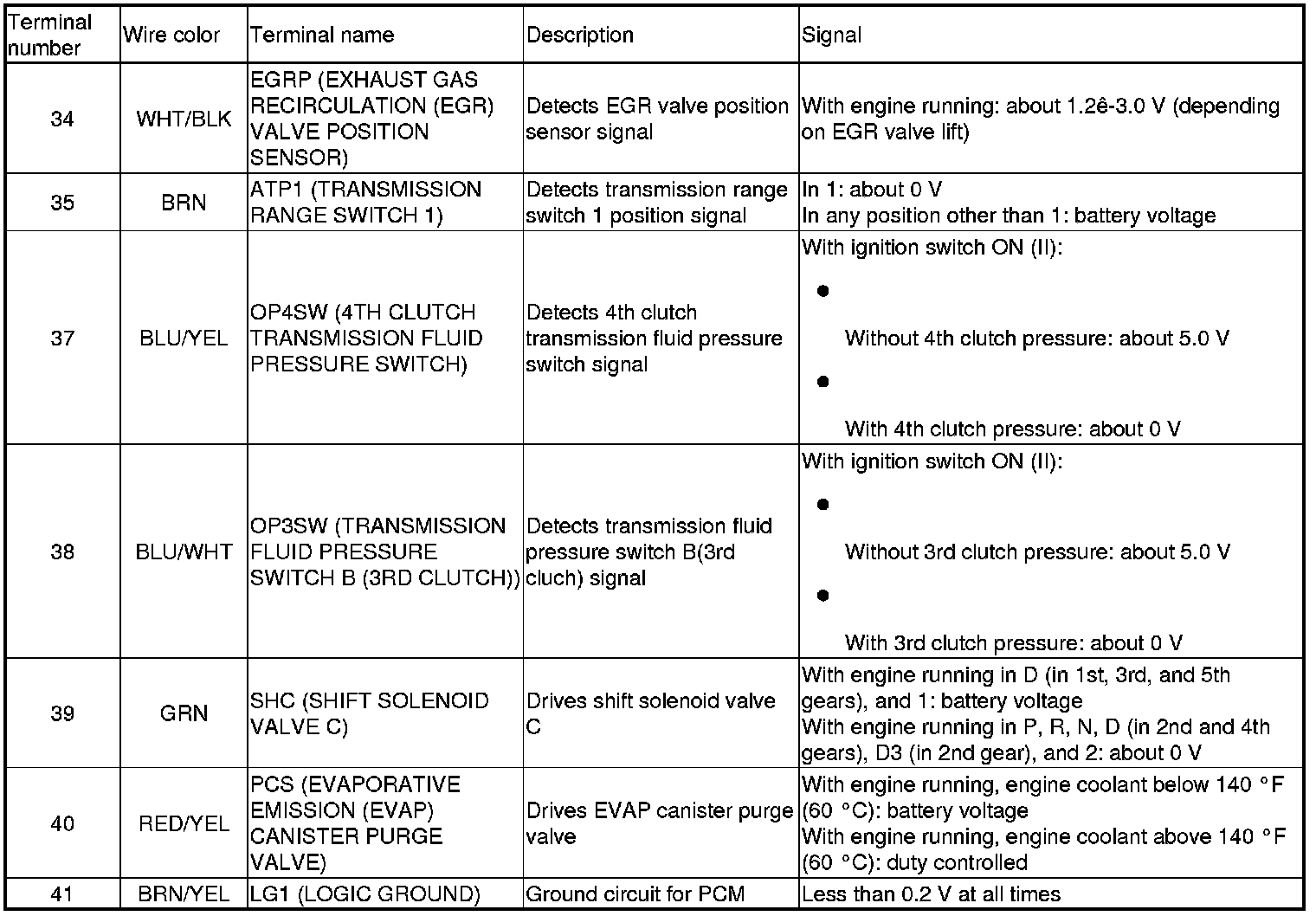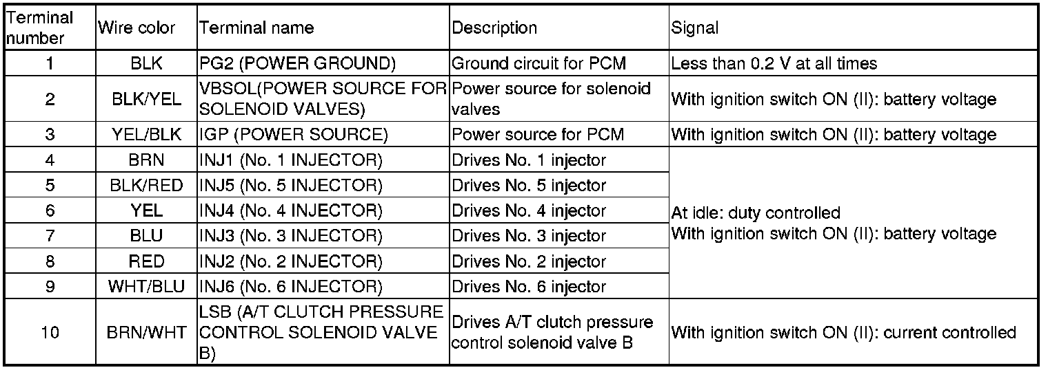 PCM Inputs and Outputs at PCM Connector A (square) (49P)