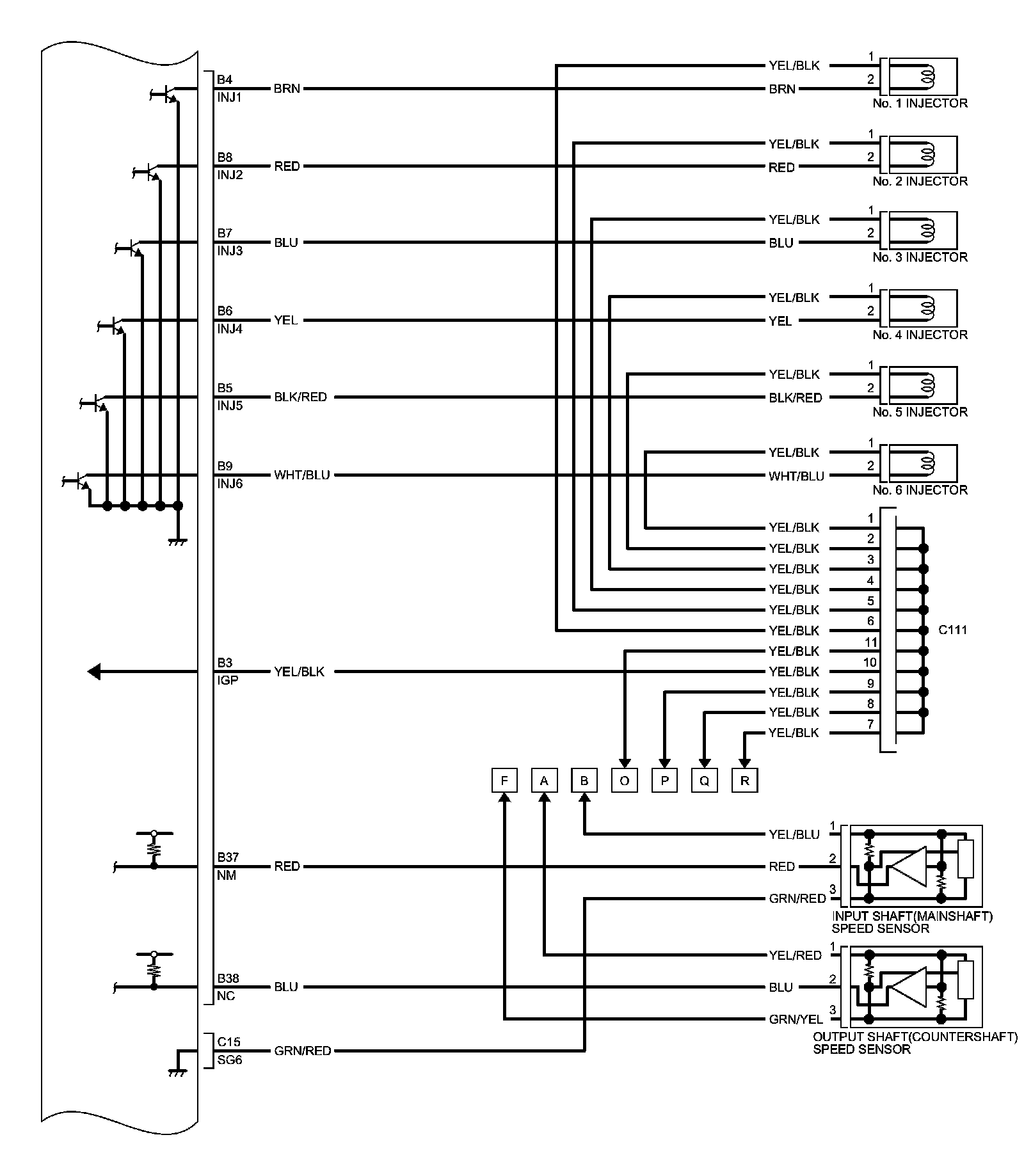 PCM Inputs and Outputs at PCM Connector C (circle) (49P)