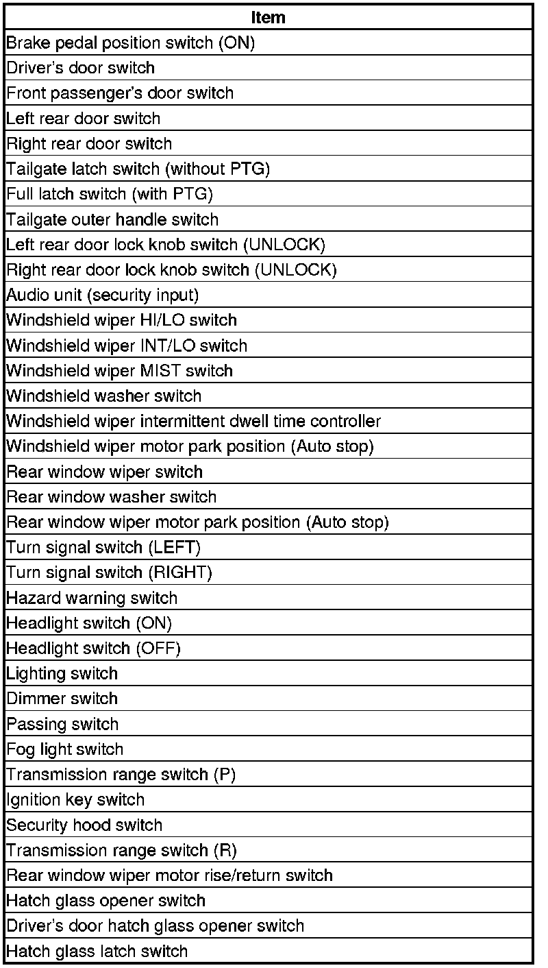 10. The following tables list the circuits that can be checked in Test Mode 2. Operate the switch that is most closely related to the problem. If the circuit is OK, the individual map lights will blink once. If the circuit is faulty, there will be no indication.