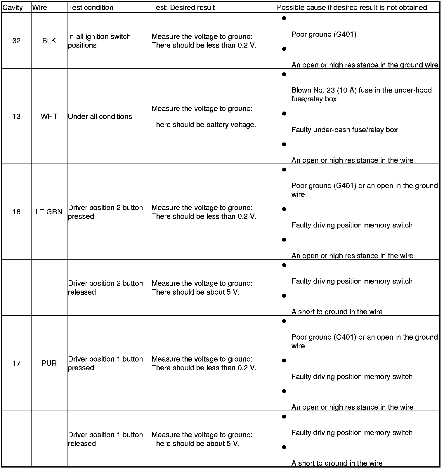 Driving Position Memory System (Power Window Master Switch) Input Test