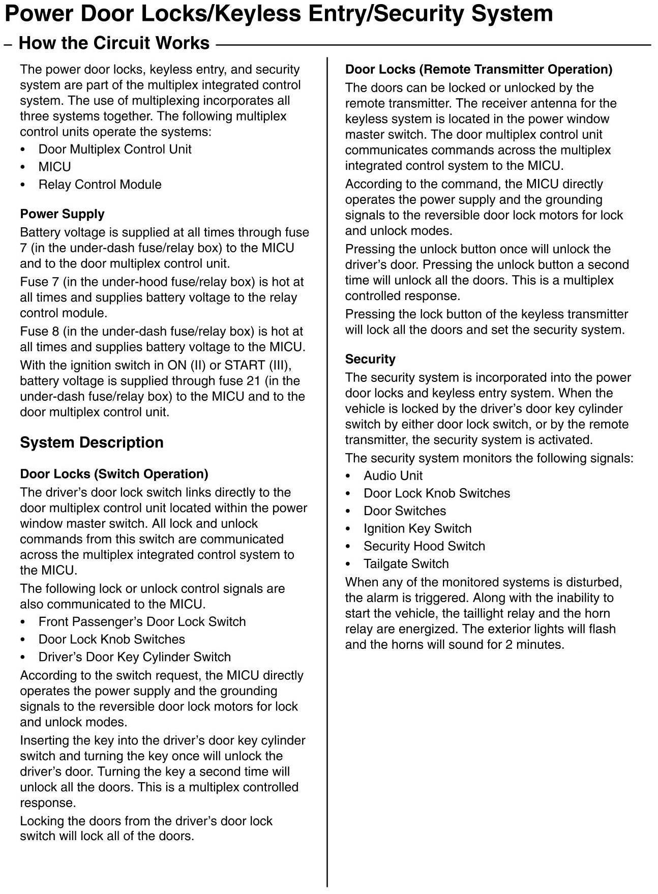 How The Power Door Locks/Keyless Entry/Security System Circuit Works