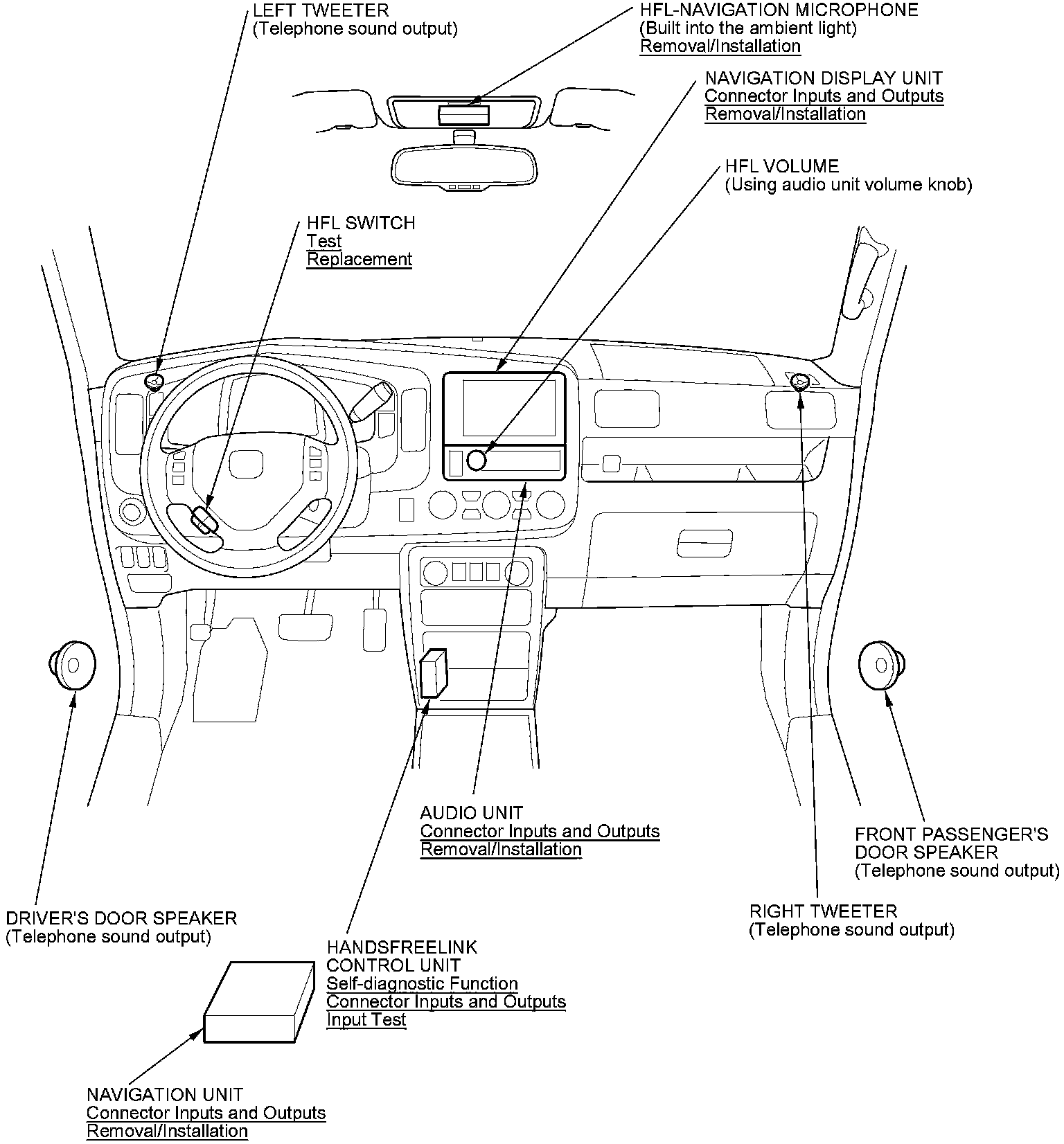HandsFreeLink System Component Location Index (With Navigation)