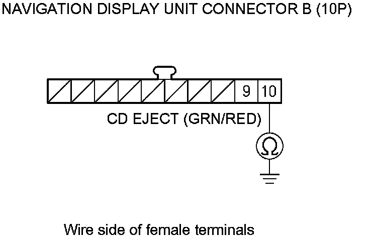 3. Check for continuity between navigation display unit connector B (10P) terminal No. 10 and body ground.