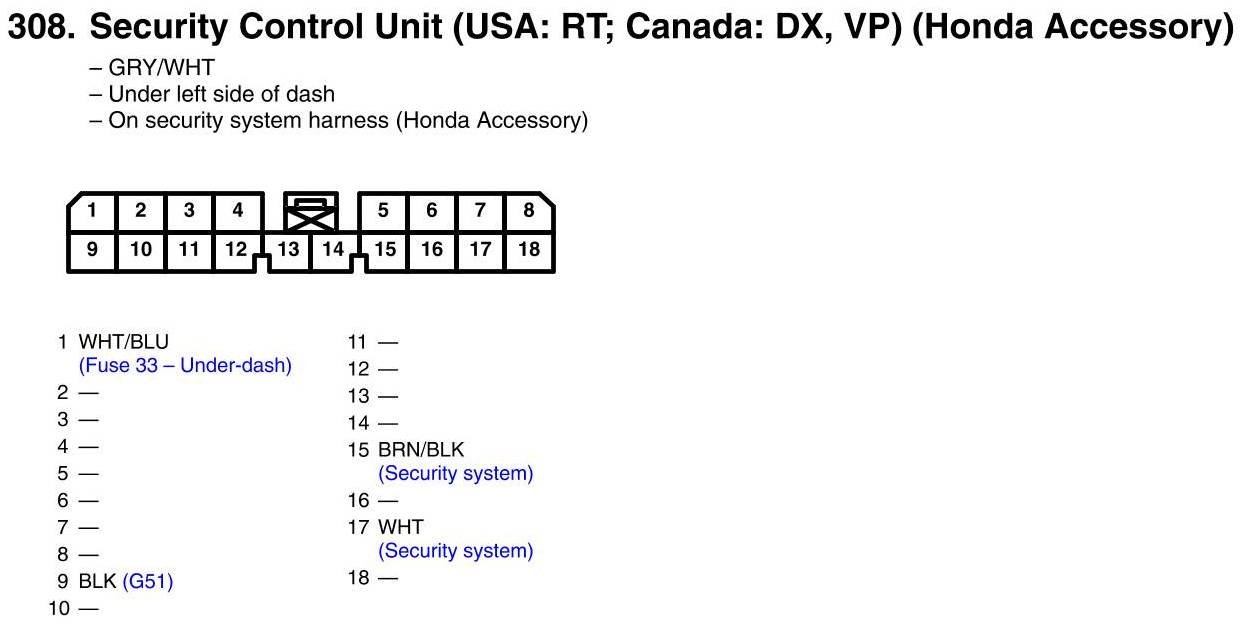 Security Control Unit Connector View (USA: RT; Canada: DX, VP) (Honda Accessory)