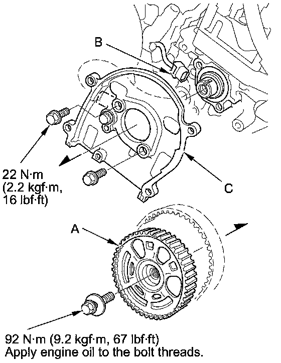 3. Disconnect the CMP sensor connector (B), then remove the back cover (C).