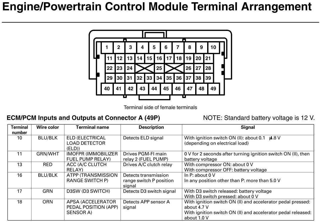 PCM Inputs And Outputs At Connector A