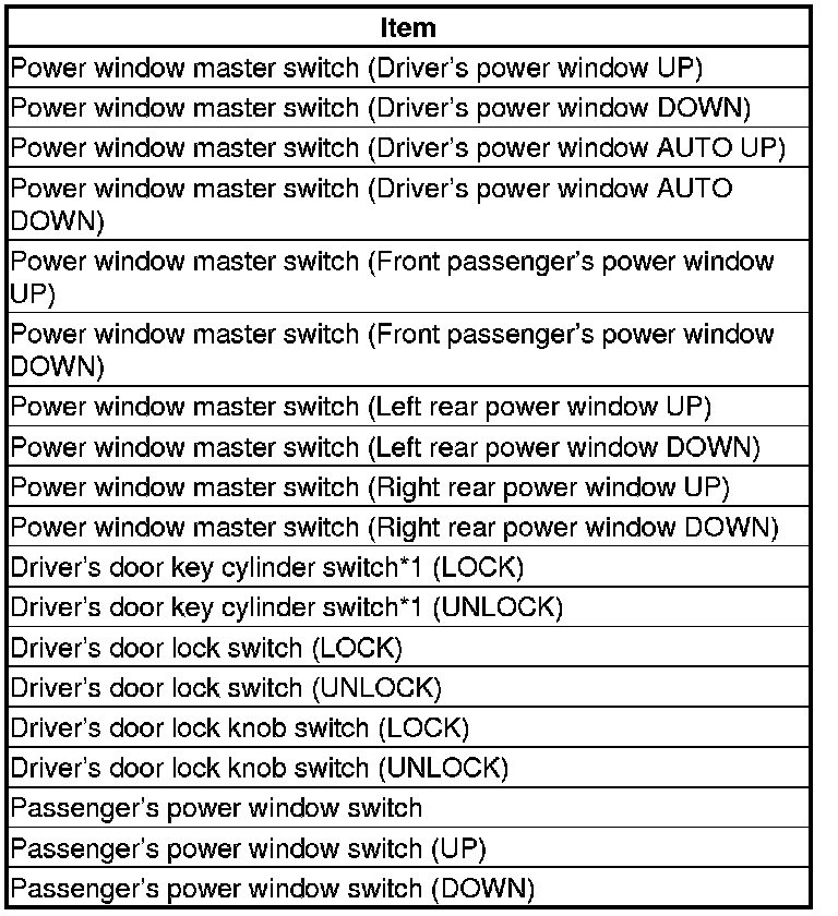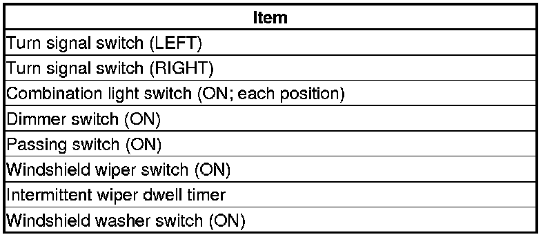 12. The following tables list the circuits that can be checked in Test Mode 2. Operate the switch that is most closely related to the problem. If the circuit is OK, the map lights will blink once. If the circuit is faulty, there will be no indication.