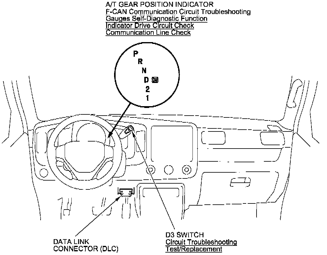 A/T Gear Position Indicator Component Location Index