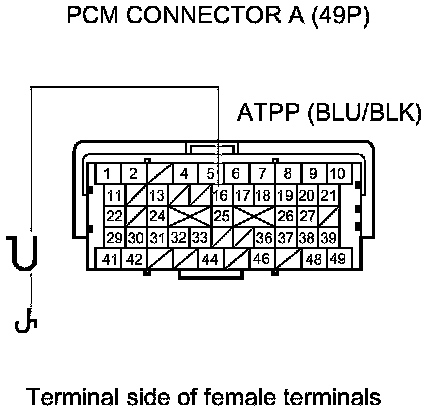 15. Disconnect PCM connector A (49P).