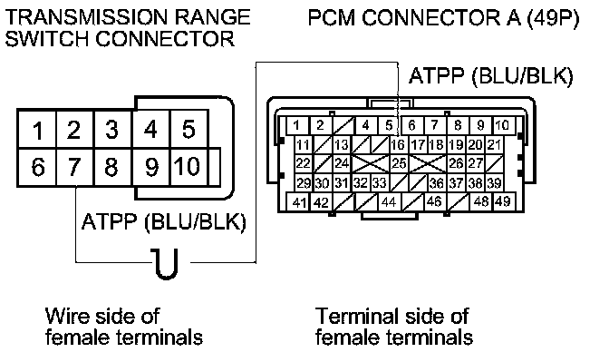 Repair open in the wire between PCM connector terminal A16 and the transmission range switch connector.�