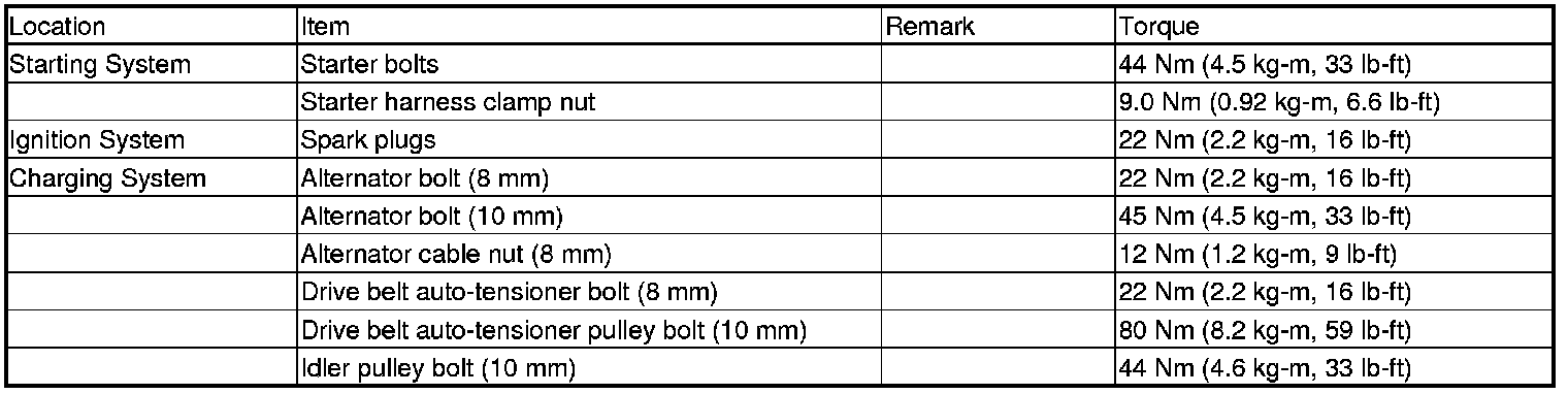 Torque Specifications