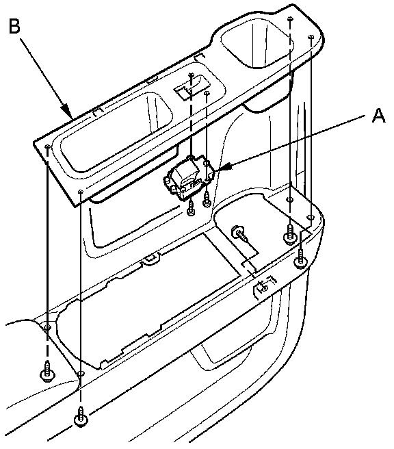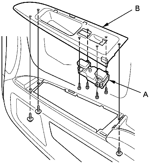 2. Remove the four mounting screws, then remove the power window switch (A) from the switch panel (B).