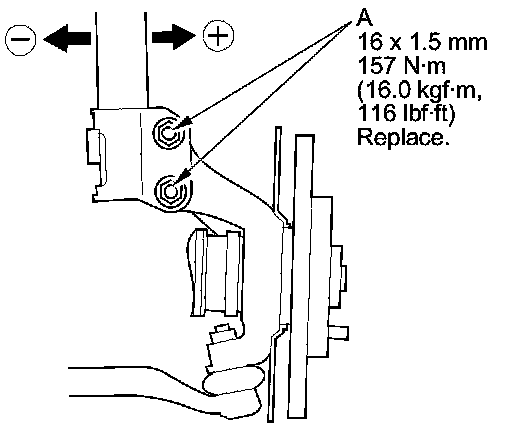 9. Replace the damper pinch bolts with the adjusting bolts (A), and adjust the camber angle.