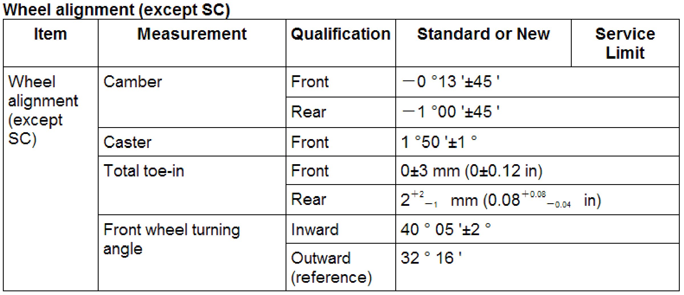 Wheel Alignment Specifications