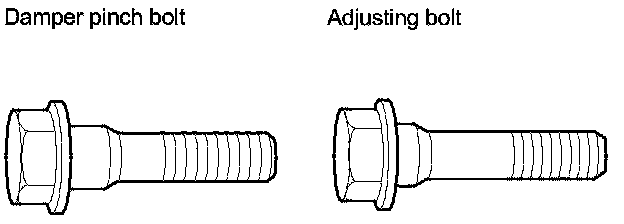 - The camber angle can be adjusted up to ±20 ' (center of tolerance) by replacing one damper pinch bolt with the adjusting bolt.