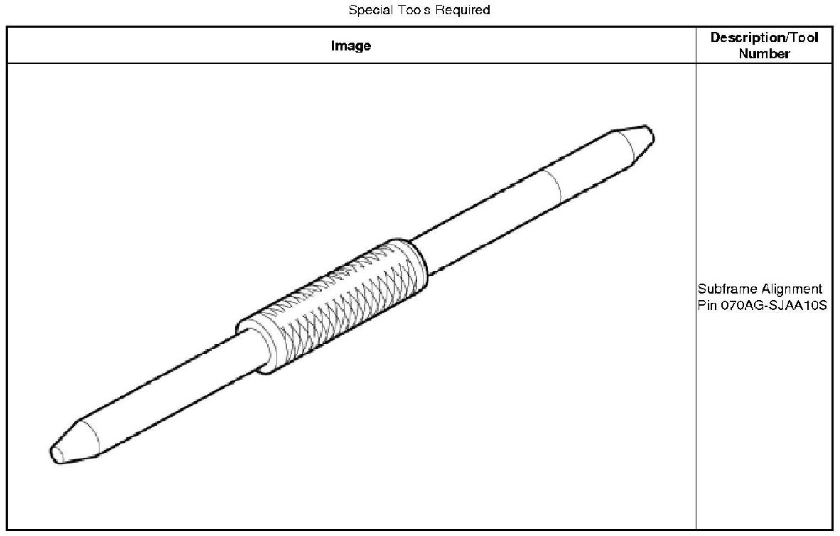 * When Installing, align both installation reference holes in the subframe with both reference holes in the body using the subframe alignment pin as a guide.