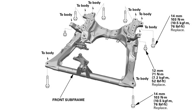NOTE: After removing the subframe mounting bolts, be sure to replace them with new ones.