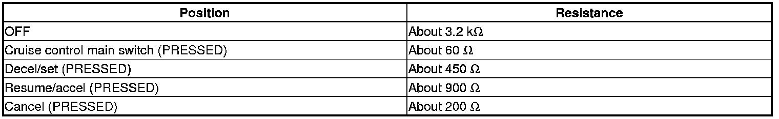 If there is no resistance in one or more positions, replace the cruise control combination switch.