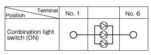2. Check for continuity between cruise control combination switch 12P connector terminal No. 1 and No. 6.