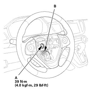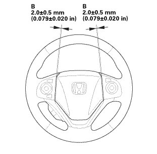 NOTE: Make sure the clearance (B) between the steering wheel and the horn pad is the specified value.