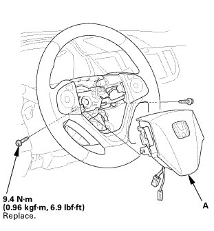 6. Install the steering wheel bolt (A), and tighten it to the specified torque.