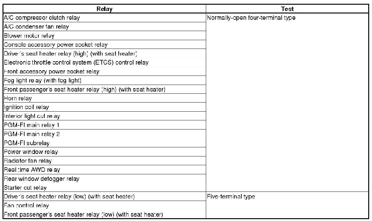 Use this chart to identify the types of the relay, then do the test listed for it.