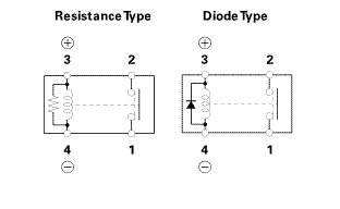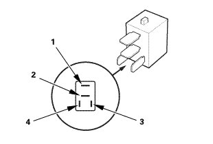 * There should be continuity between terminals No. 1 and No. 2 when battery power is connected to terminal No. 3, and battery ground is connected to terminal No. 4.