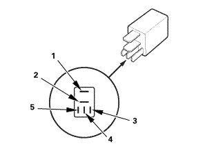 * There should be continuity between terminals No. 1 and No. 2 when battery power is connected to terminal No. 3, and battery ground is connected to terminal No. 5.