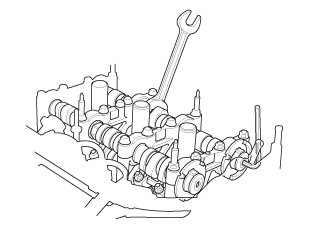 3. Hold the camshaft with an open-end wrench, then tighten the bolt.