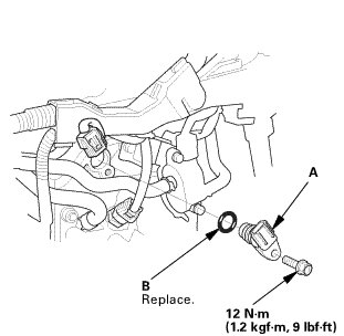 Install CMP sensor A with a new O-ring (B).