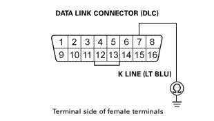 -NO- Repair a short in the K LINE wire between the DLC terminal No. 7 and the SRS unit, the VSA modulator-control unit, the TPMS control unit, the EPS control unit, the immobilizer-keyless control unit, the audio unit, the audio-navigation unit, or the driver's under-dash fuse/relay box.