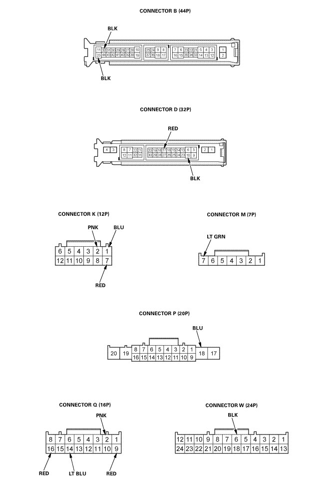 2. Disconnect under-dash fuse/relay box connectors B, D, K, M, P, Q, and W Under-Dash Fuse/Relay Box Removal and Installation.