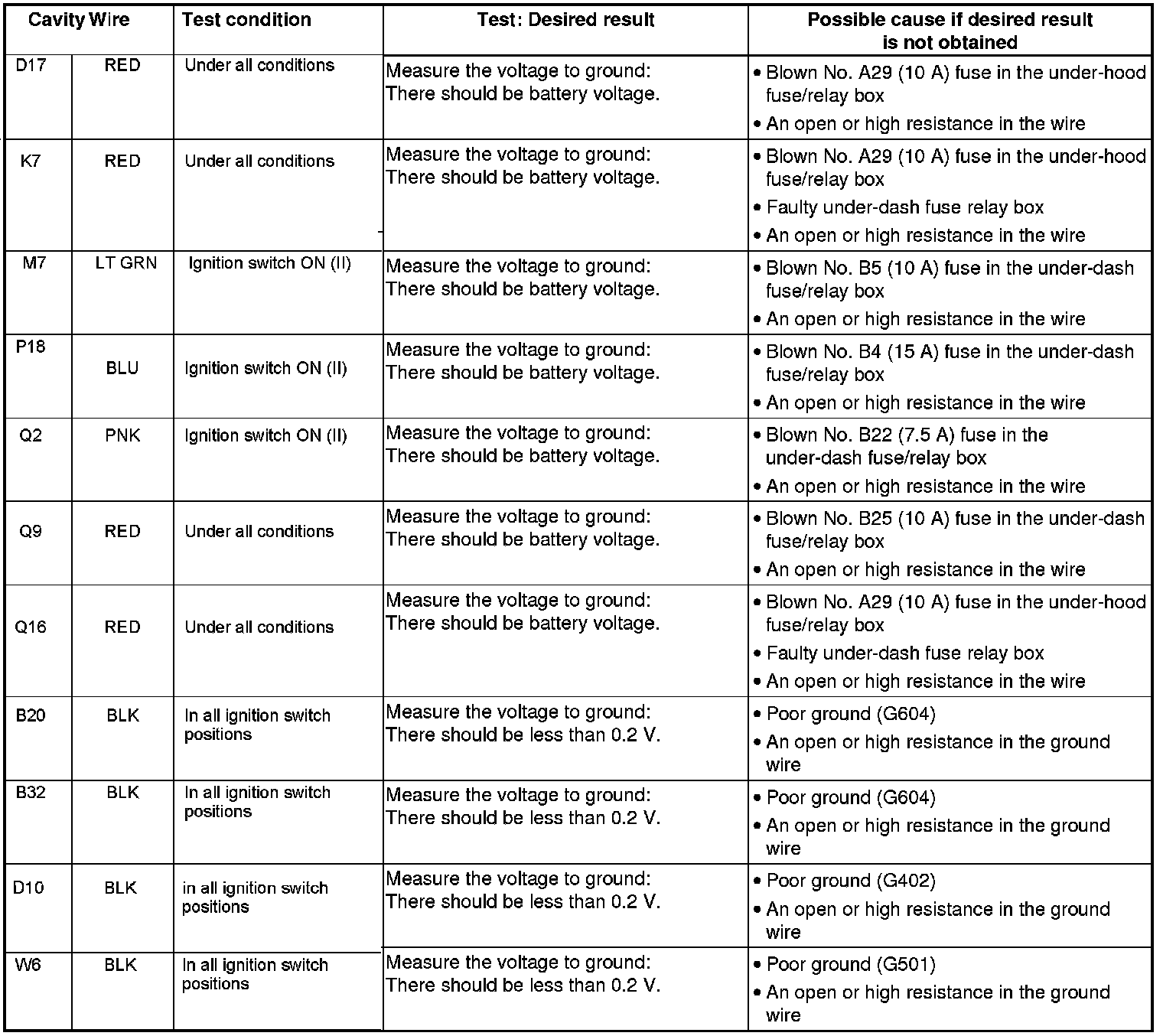 5. Reconnect the connectors to the under-dash fuse/relay box; do the following input tests: