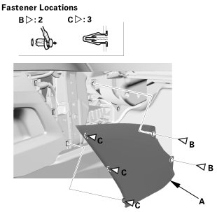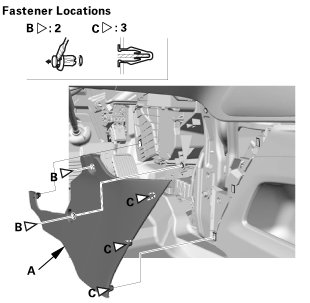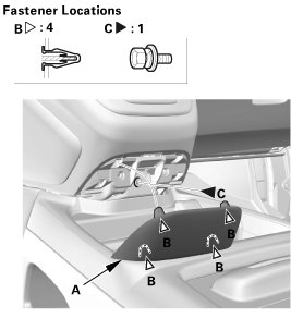 1. Carefully pry out the center lower cover (A) with the appropriate trim tool to detach the clips (B), then remove the center lower cover.